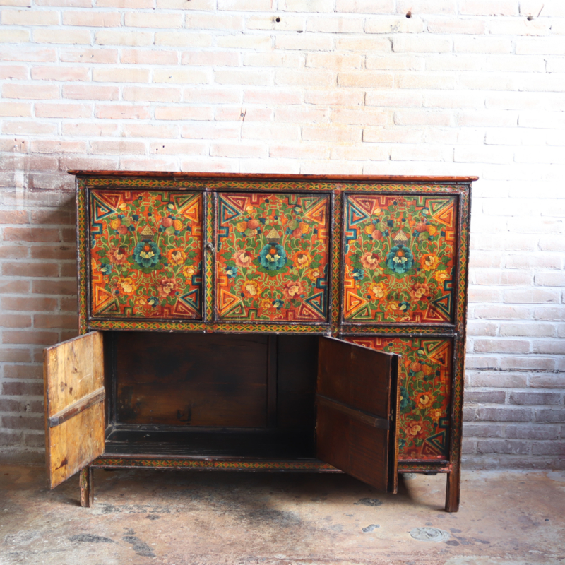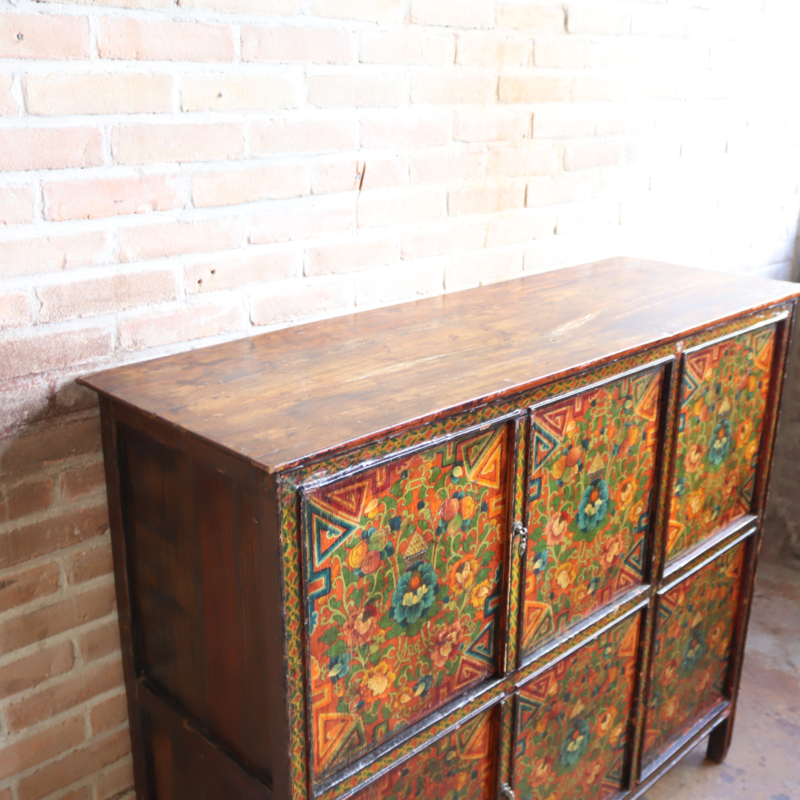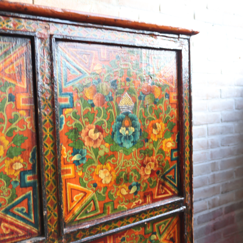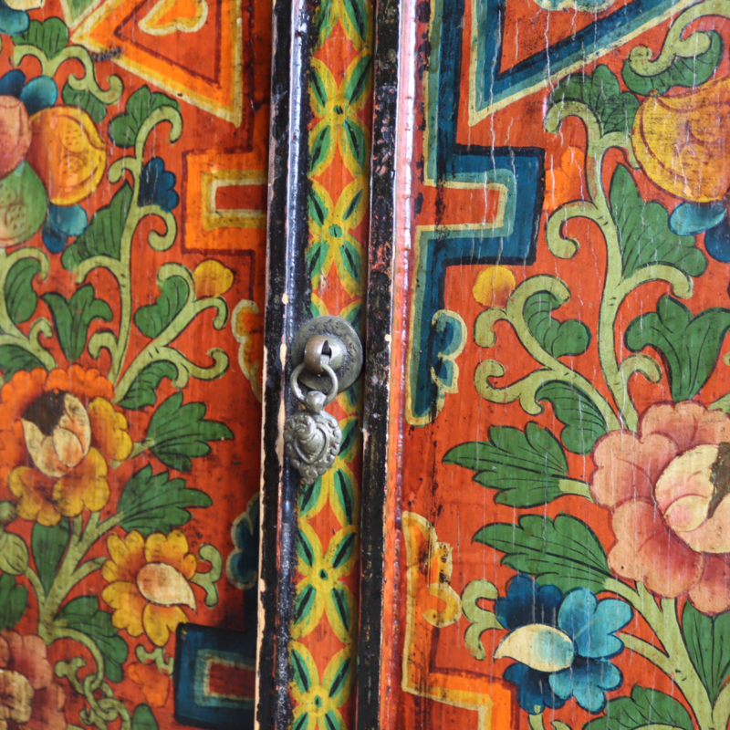 Antieke Tibetaanse kast geschilderd kleur