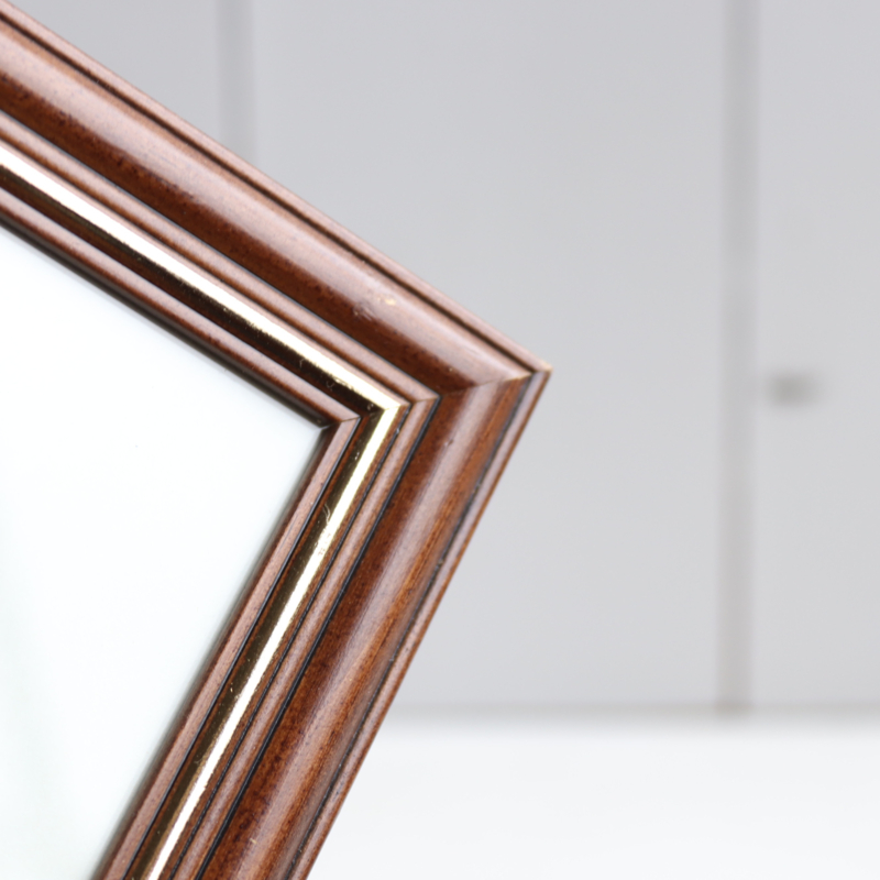Leuk foto lijstje in donker hout met goude rand, om neer te zetten. In vintage staat met wwat gebruiksporen.