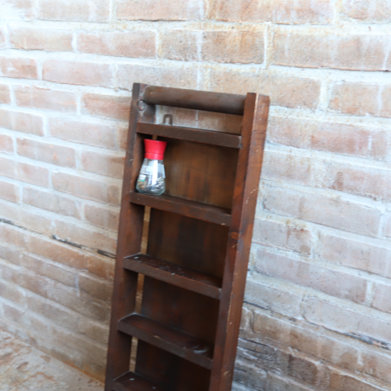 Artikelnummer: 8263 OverzichtVintage vakkenkastje voor aan de wand, met twee ogen kan je het aan de wand bevestigen. te gebruiken voor kruiden maar ook leuk in een kinderkamer met auto's of een andere verzameling. In goede vintage staat.