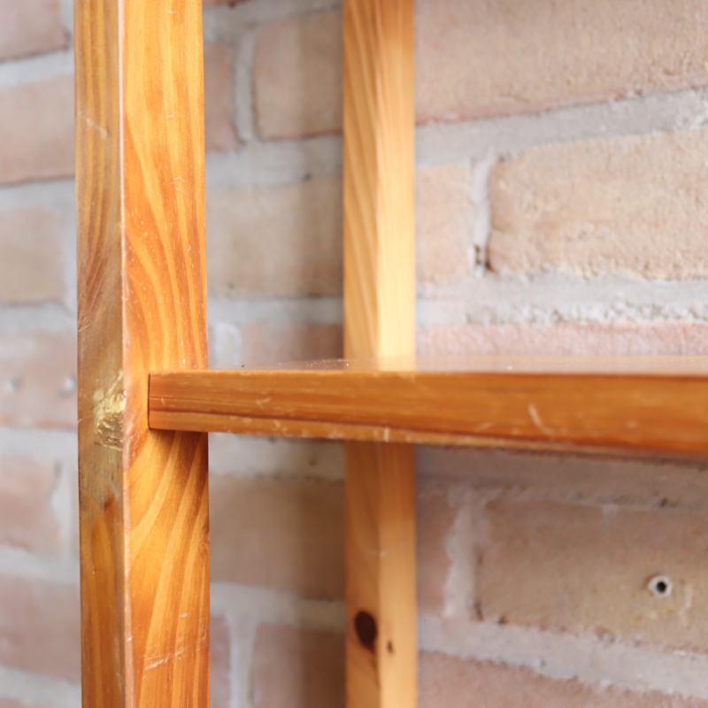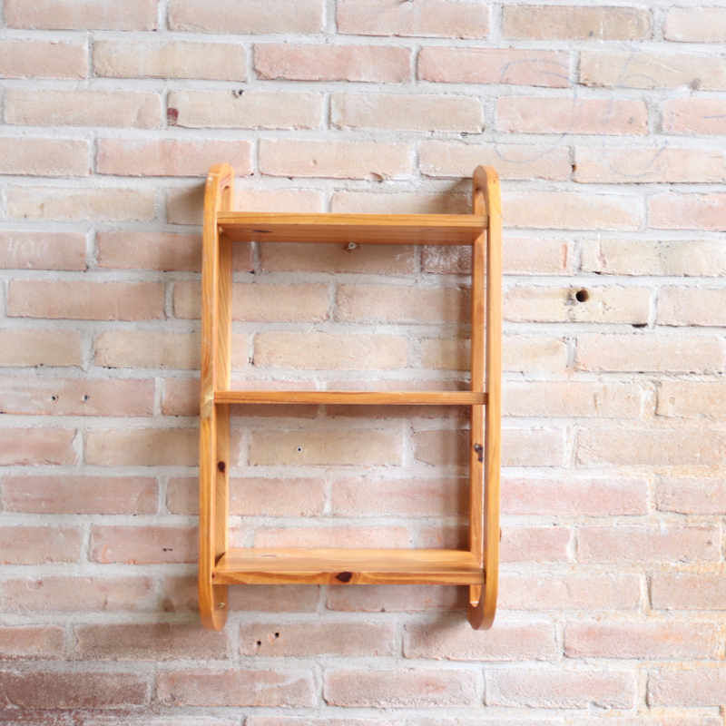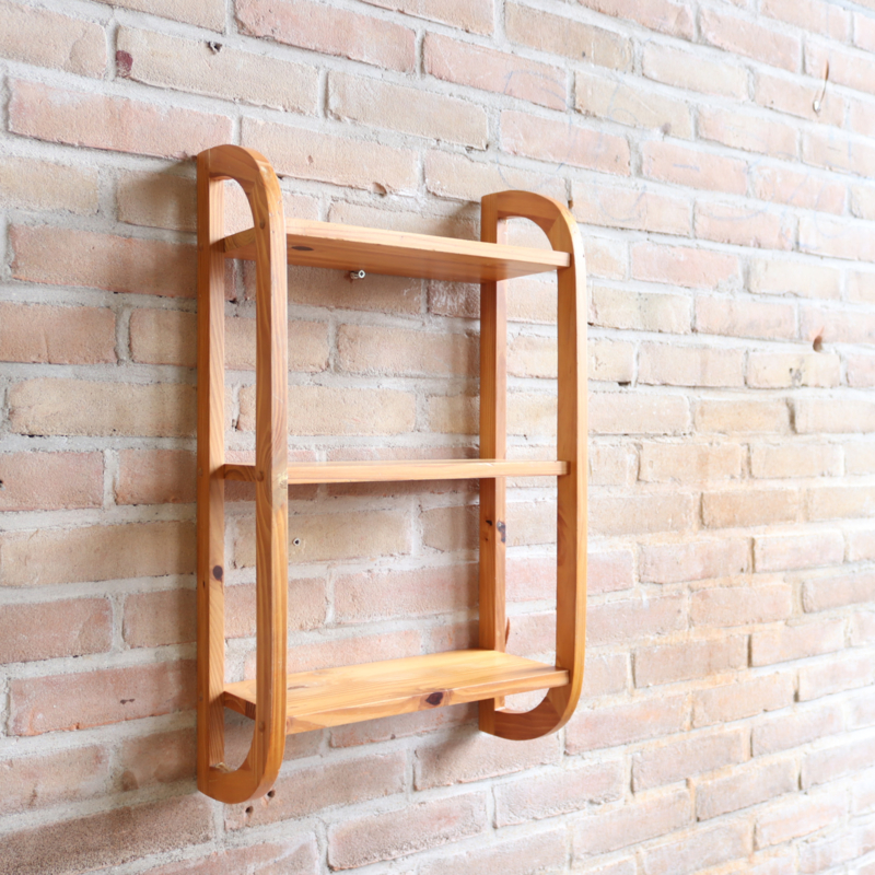 Vintage pinewood wandkast met ronde vormen met 3 plankjes, leuk voor kinderkamer of badkamer bijv. In goede vintage staat.