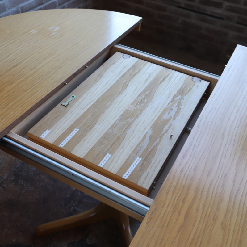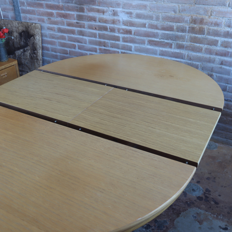 Vintage eettafel rond uitschuifbaar ovaal kruispoot