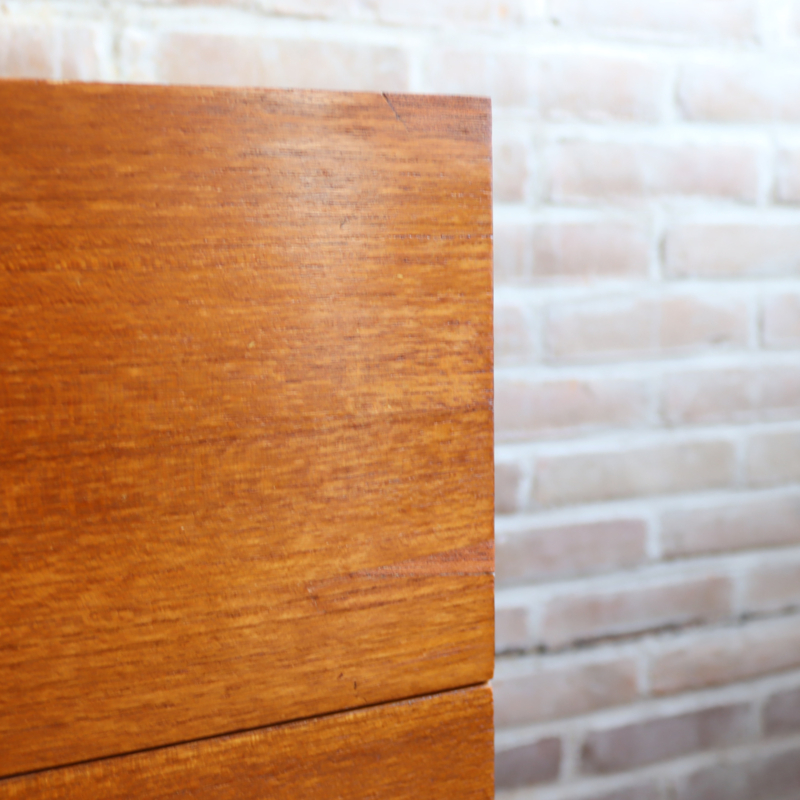 Artikelnummer: 8310 OverzichtVintage ladekastje met leuke smalle pootjes met zwarte handgrepen. In goede vintage staat met lichte gebruiksporen, op de lade zijn wat fineerschade reparatie. Pootjes kunnen er nog af voor vervoer.