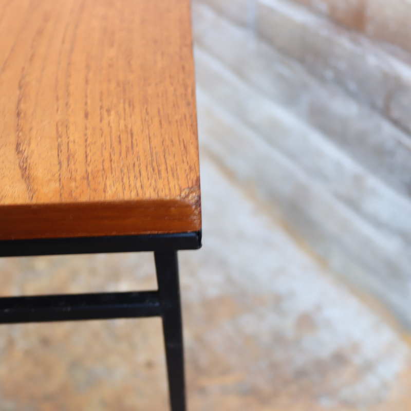Vintage bijzettafel zwart metaal hout teak