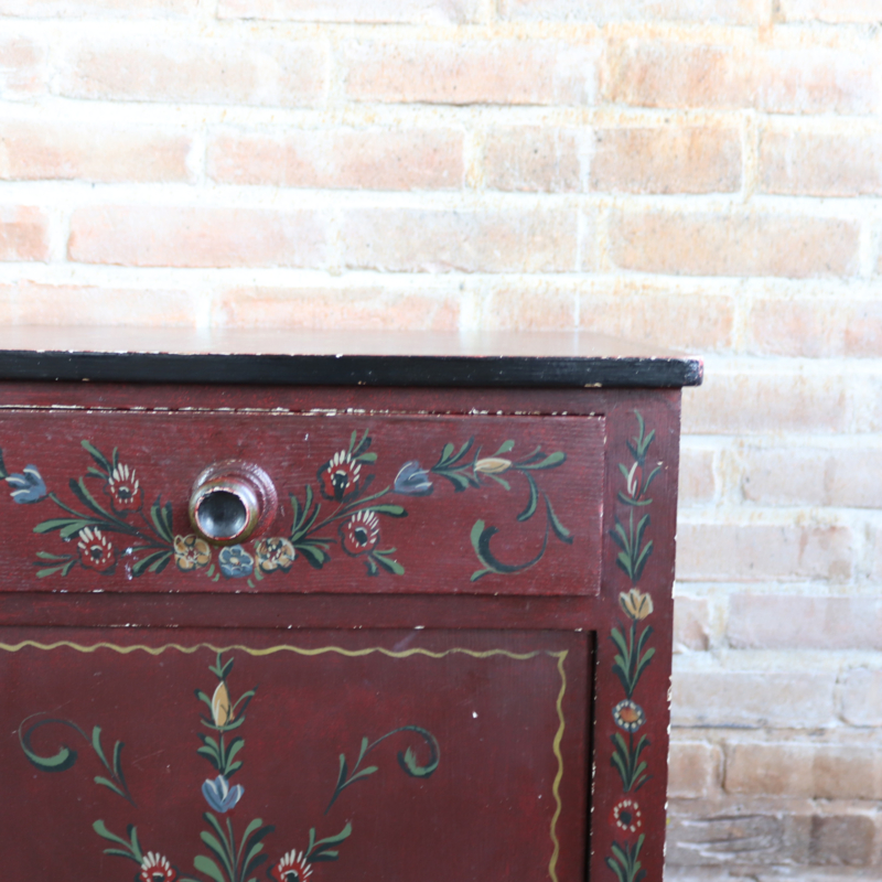 Vintage nachtkastje rood bloemen folklore hindeloopen