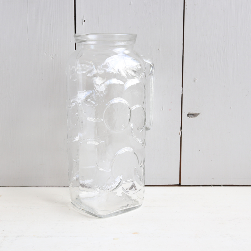 Vintage karaf van glas met citrus /citroen print. In goede vintage staat.