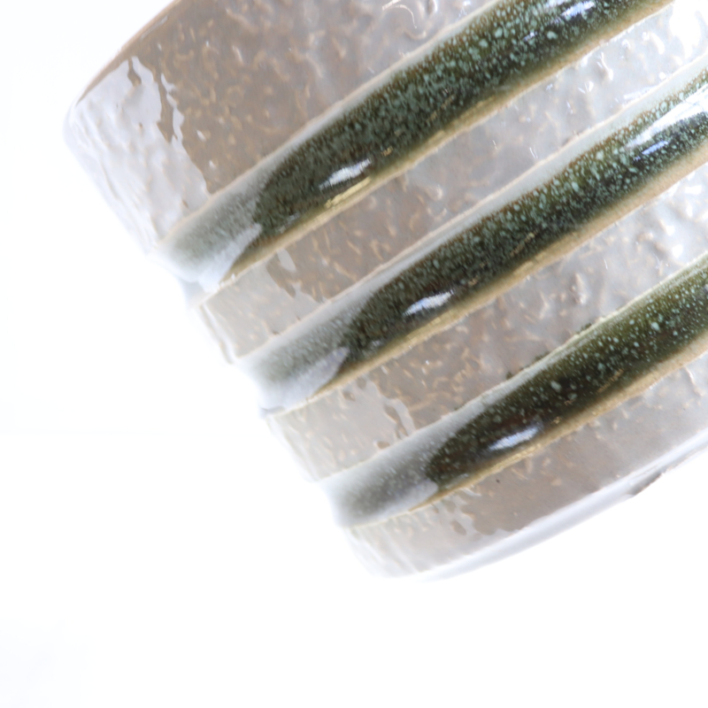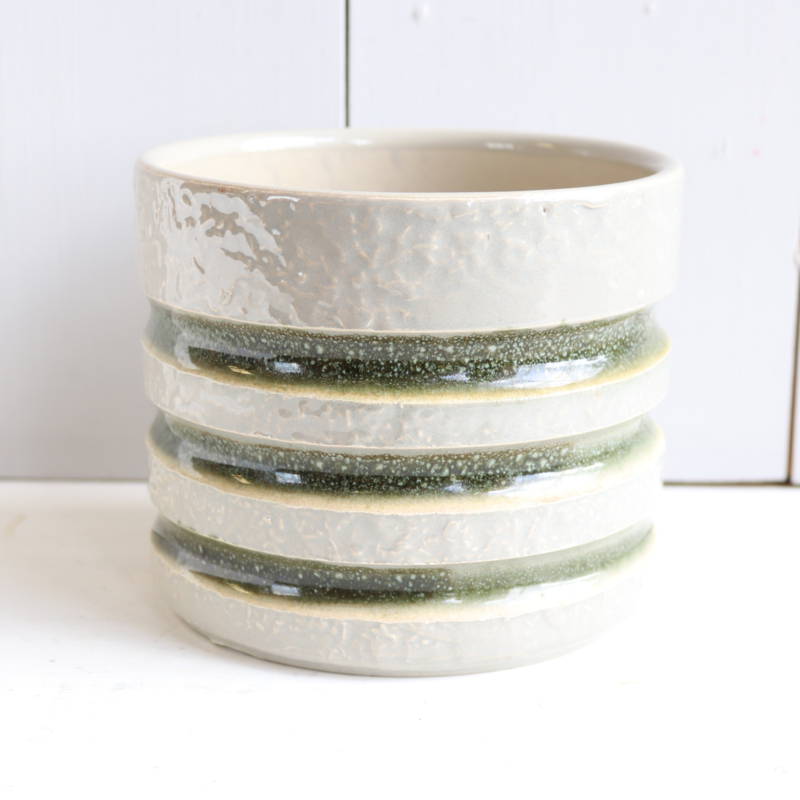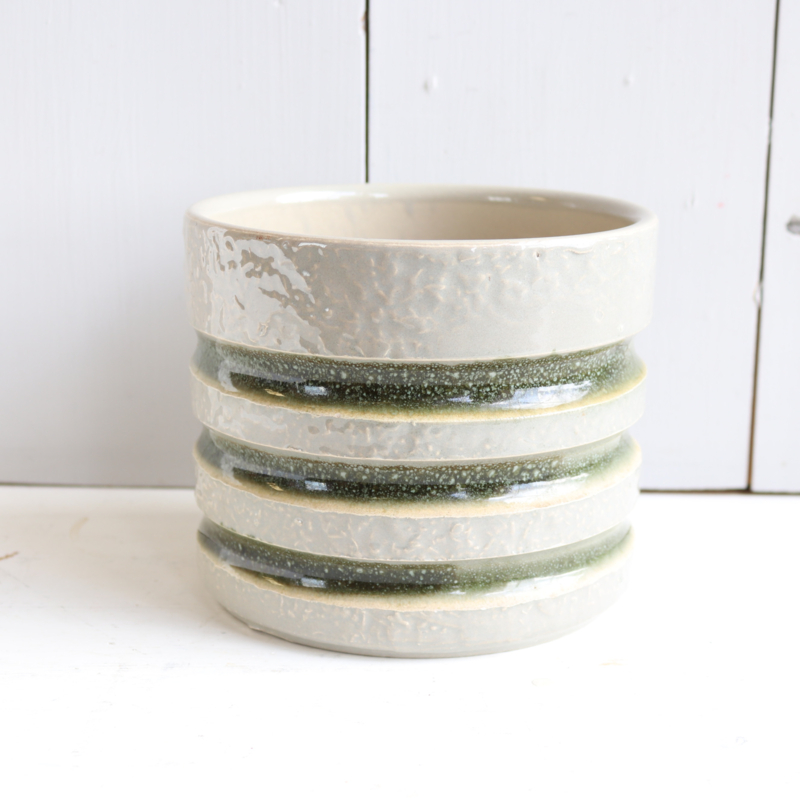Vintage bloempot in licht blauwe kleur met groene streep. In goede vintage staat.