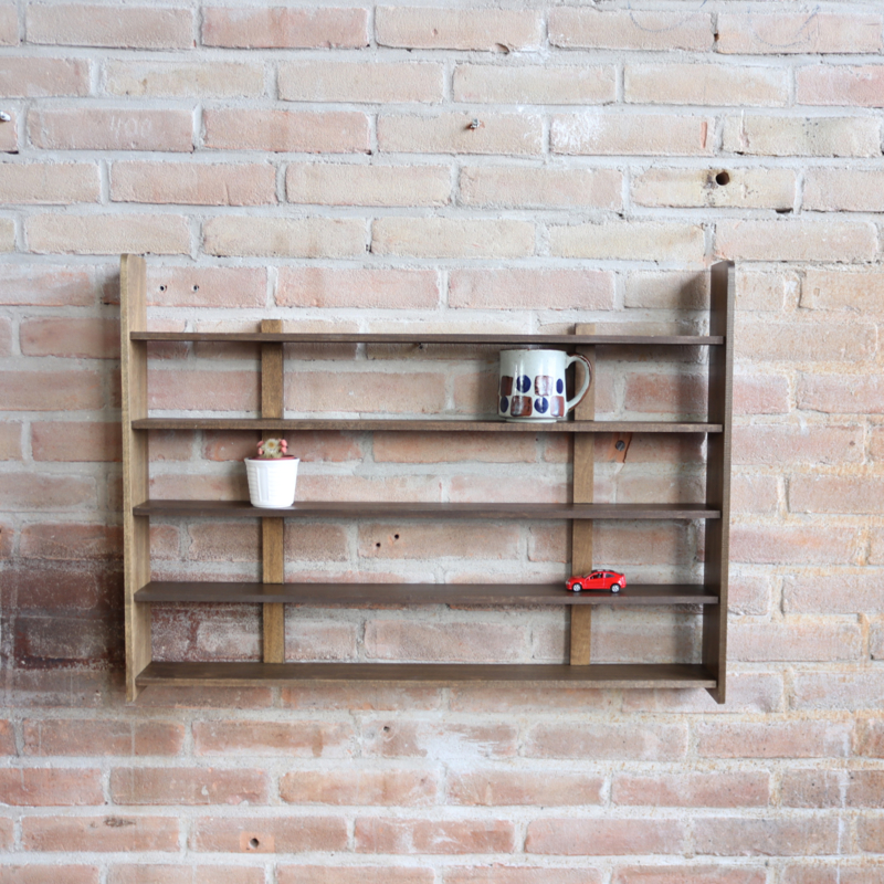 Artikelnummer: 8263 OverzichtVintage wandkastje met vakjes, in donker hout gemaakt van plankjes. Leuk voor bijvoorbeeld een verzameling zoals autootjes in de kinderkamer. In goede vintage staat.