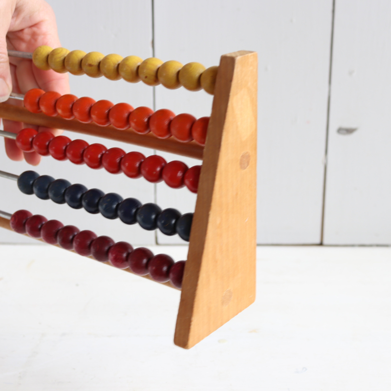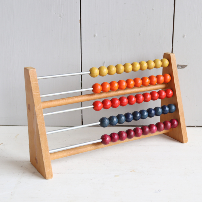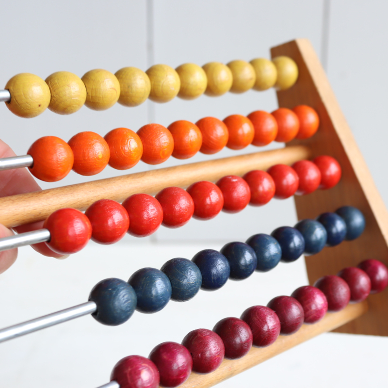 Vintage telraam van hout met gekleurde kralen. In goede vintage staat.
