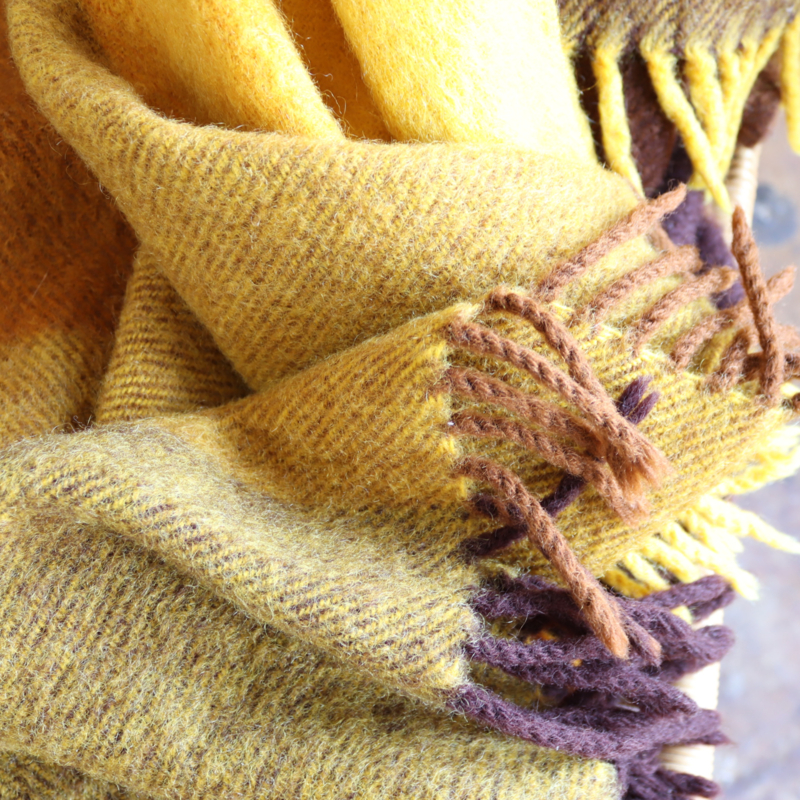 Vintage deken wol oker geel plaid