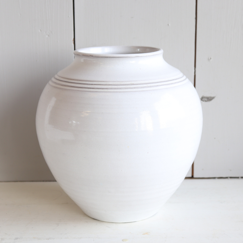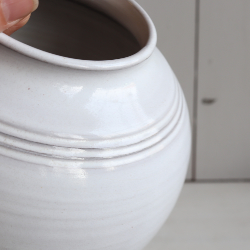 Vintage vaas wit met tof patroon streep patroon en bolling. In goede vintage staat denk handgemaakt met onderop de tekst Bedankt :).